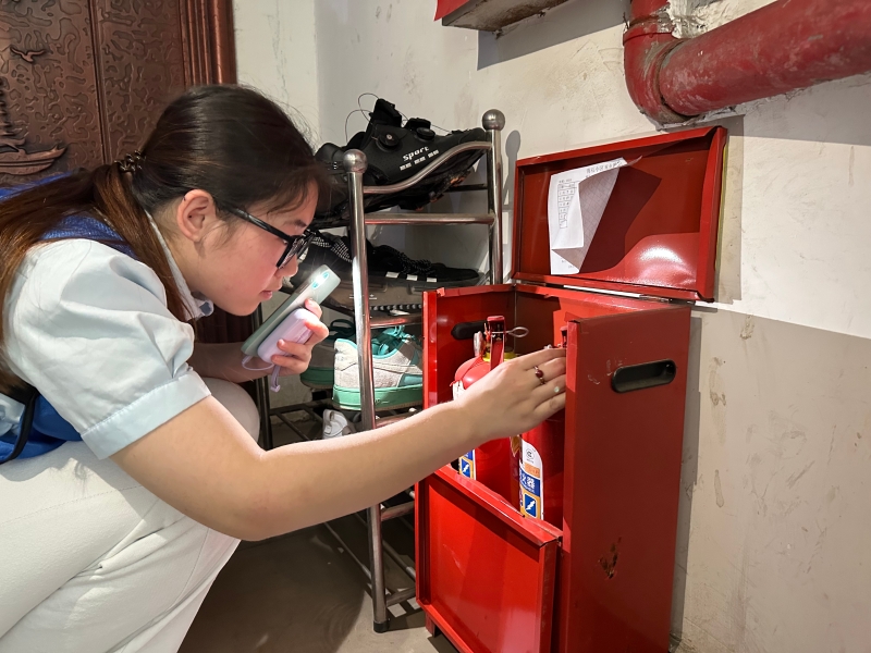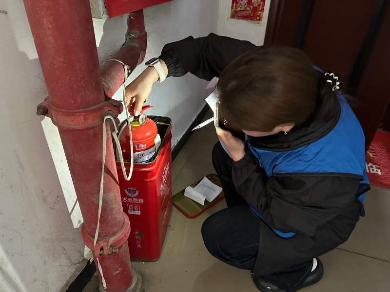 活动过程中,志愿者们分工协作、有条不紊,对青春社区各楼栋展开细致的消防安全隐患排查。重点检查三项内容:一是查看楼道内灭火器压力表指针,若指针处于红色区域,认真记录具体楼栋及楼层号;二是检查楼道消火栓内部,核对水枪、水带是否配备完整,对缺失器材的位置做好详细登记;三是排查楼道灯座,确认是否安装灯泡,将无灯泡的点位逐一记录在册。